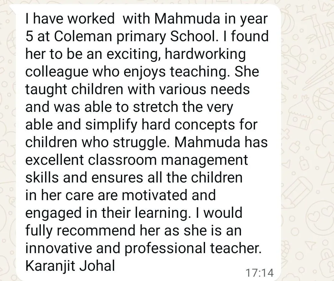 Over the years, I have specialised in key areas including Phonics, SATs preparation, Mathematics, and English comprehension.